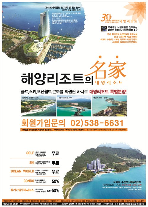 [세계닷컴]대명리조트는 대한민국 리조트부분 대표 브랜드인 “2009년 대한민국 브랜드 대상”에서 지식경제부장관상을 수상한 기념과 더불어 여름성수기를 대비하여 신규 특별기념 회원을 모집한다.