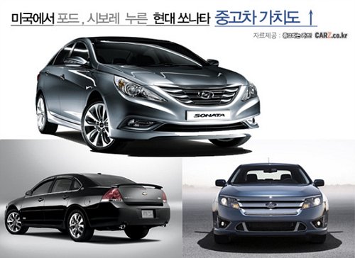 중고차사이트 카즈(http://www.carz.co.kr)가 제공하는 중고차시세표를 보면 YF쏘나타 프라임 2010년식의 경우 신차가격이 2,345만원임에도 중고차가격은 2,200만원으로 나타나, 신차가격대비 중고차의 가치 감가율은 6.2%에 불과했다. 한편, 지난 2월 미국의 오토모티브 리스 가이드(ALG)에서 선정한 3년 후 잔존가치 평가 결과에 따르면 현대의 신형 YF쏘나타의 잔존가치는 52.8%로, 닛산 알티마의 51.1%, 도요타 캠리의 49.5% 보다도 높은 것으로 집계됐다.