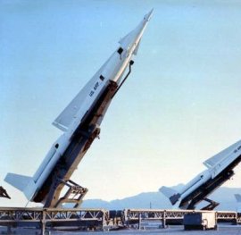 | ◇‘백곰’ 유도탄의 모델인 나이키 허큘리스 미사일. 1950년대 미국 레이시온사가 개발한 장거리 고고도 대공미사일로 마하 3의 속도로 비행하며 표적 70m 범위 내에서 폭발, 목표물을 격추시킨다. |