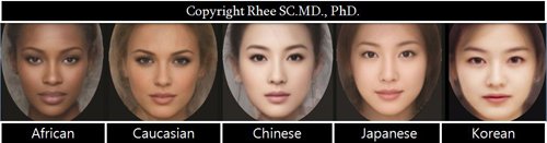 | ◇이승철 교수가 논문에서 발표한 인종별 매력적인 미인상. 왼쪽부터 아프리카, 코카서스, 중국, 일본, 한국의 미인. 연합뉴스 |
