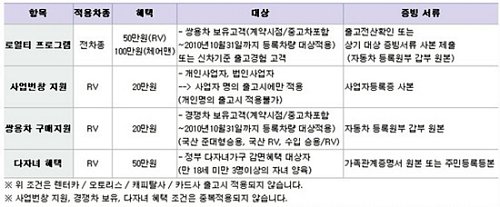또한, 쌍용자동차는 쌍용차 보유고객과 신차 출고 경험이 있는 고객을 대상으로 50만원(RV차량), 100만원(체어맨)을 할인해 주는 “로열티 프로그램”, 개인 및 법인사업자 명의로 출고하는 경우 20만원(RV차량)을 할인해 주는 “사업번창 지원”, 경쟁차 보유고객을 대상으로 20만원(RV차량)을 할인해 주는 “쌍용차 구매지원”, 그리고 만 18세의 3자녀 이상을 양육하고 있는 “다자녀 가구”에게 50만원(RV)을 할인해 준다.