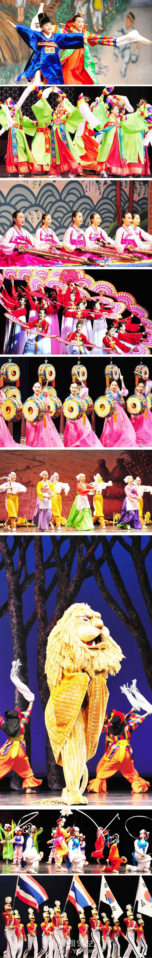 | 리틀엔젤스가 10일과 11일 저녁 태국 방콕에서 열린 유엔군 참전국 16개국 3차 순회공연에서 한국전 참전용사와 태국 시민들에게 한국의 전통춤과 합창으로 보은의 공연을 펼쳤다. 태국 방콕에서 열린 리틀엔젤스의 공연을 화보형식으로 정리해 보았다. ◇사진 위에서 아래로 시집가는 날 (Wedding Day) 화관무 (Flower Crown Dance) 가야금 병창 (Folk Singing with Kayakum) 부채춤 (Fan Dance) 북춤 (Drum Dance) 농악 (Farm Dance) 탈춤 (Mask Dance) 농악 (Farm Dance) 장난감 병정 (Toy Soldiers) |