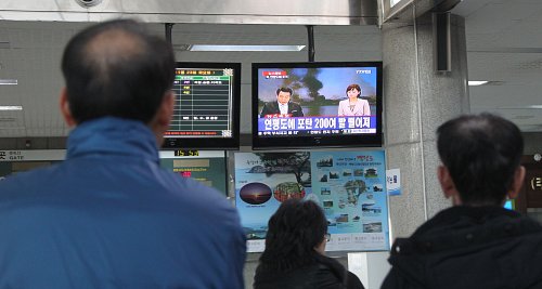 '이러다 전쟁나는 거 아녀?' 입력 : 2010-11-23 17:11:55 수정 : 2010-11-23 17:11:55 구글 네이버 유튜브 인천 연평도에 북한이 발사한 포탄 수십발이 떨어진 23일 오후 인천 연안여객터미널에서 여객선을 기다리던 승객들이 TV뉴스를 근심스럽게 지켜보고 있다. Copyright ⓒ 세계일보. 무단 전재 및 재배포 금지 세계일보 양혜선