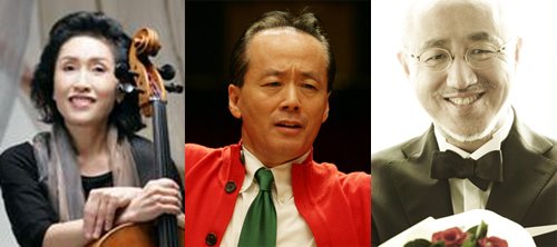 | ◇(사진 왼쪽부터)첼리스트 정명화, 지휘자 금난새, 뉴에이지 피아니스트 유키 구라모토 |