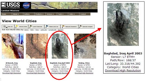 | 한국계 미군 이병 M(20)씨가 위장 게시한 2003년 4월2일 바그다드 폭격 사진. 이 사진은 미항공우주국(NASA) 홈페이지에 게재된 바 있다. |
