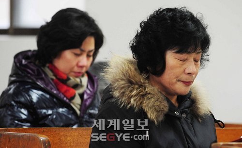 | ◇“우리를 지켜주소서” 우리 군이 예고한 연평도 해상사격훈련을 앞두고 서해5도 지역에 긴장이 고조되는 가운데 19일 연평도의 한 교회에서 주민들이 예배를 보며 간절히 기도하고 있다. 연평도=송원영 기자 |