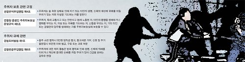 광진서 한 형사는 “대부분 술 때문에 일어나는 일”이라며 “일본은 술 마시고 범죄를 저지르면 특별법으로 가중처벌하는데, 우리나라는 거꾸로 술 마셨다고 감경해 준다”고 토로했다.