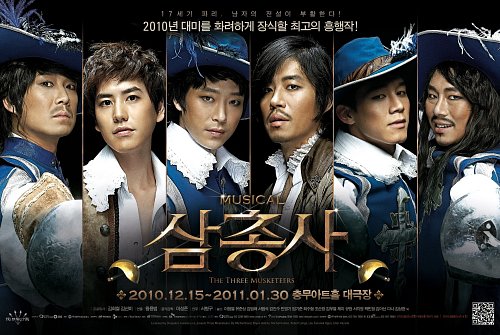 뮤지컬 [삼총사]는 프랑스의 작가 뒤마의 소설이 원작. 17세기 프랑스를 배경으로 왕실 총사가 되기를 꿈꾸는 청년 달타냥(김무열, 엄기준, 규현, 제이)과 왕실의 총사 아토스(유준상,서범석), 포르토스(김진수,김법래), 아라미스(민영기,최수형) 세 사람이 루이 13세를 둘러싸고 프랑스 왕실의 최고 권력자 추기경(조순창, 이정열)이 꾸미는 음모를 밝혀내기 위해 떠나는 모험을 그려낸 유럽 정통 뮤지컬이다. 달타냥과 사랑에 빠진 콘스탄스를 구해내기 위한 추격신 역시 극에 양념을 더한다.