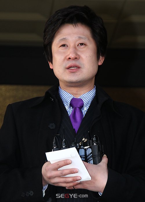 성세정 아나운서연합회 협회장이 12일 오후 서울 서부지방법원에서 열리는 성희롱 발언으로 불구속 기소된 강용석의원 재판에 증인으로 참석해 인터뷰를 하고 있다.