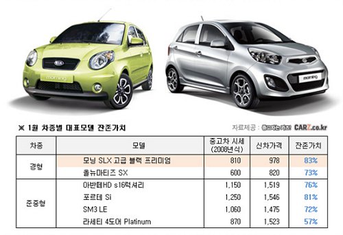 국민경차 ‘모닝’ 신형이 사전계약 첫 날 2,000대를 돌파하며 성황을 이루고 있다. 그런데 신형에 대한 관심이 클수록 가치 하락을 피하지 못하던 구형모델들과 달리, 기존 모닝은 1월 들어 중고차 가격이 상승하는 등, 오히려 관심이 높아지는 기현상을 보이고 있다.