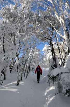 | ◇구상나무 위에는 눈이 수북이 쌓여 터널을 이루고 등산로는 찾기조차 어렵다. |