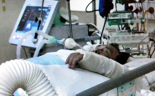| ◇청해부대의 삼호주얼리호 구출 작전 과정에서 해적에 의해 복부에 총상을 입은 석해균 선장이 22일(현지시간) 오만 살랄라 술탄 카부스 병원에서 수술을 받은 뒤 안정을 취하고 있다. (원안은 석해균 선장 ) 살랄라(오만)=연합뉴스 |