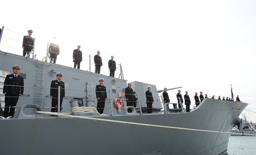 | ◇“그대들이 있어 자랑스럽습니다” 소말리아 해적으로부터 삼호주얼리호를 완벽하게 구출한 ‘아덴만 여명’작전의 주역 청해부대 6진 최영함의 승조원들. 사진은 최영함이 2010년 12월8일 부산작전기지를 출항할 당시 함내에 도열해 있는 모습. 해군 제공 |