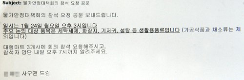 | ◇지식경제부가 지난달 24일 대형마트 3사에 보낸 공문. |