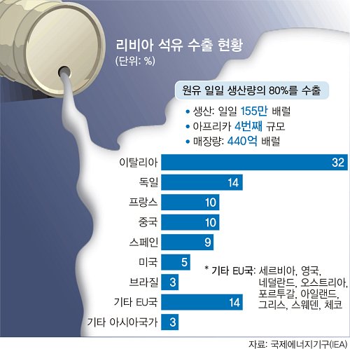 리비아는 오펙 내 10위의 석유 수출국으로 세계 전체 유전의 3%가량인 440억 배럴의 원유를 보유하고 있다. 리비아 사태 여파로 국제유가 상승이 인플레이션과 소비 침체로 이어져 세계 경제 회복세에 찬물을 끼얹는 악재로 작용할 가능성이 커지고 있다. 리비아 사태가 중동 전역으로 확산되면 원유 수급에 중대한 차질이 빚어질 것으로 예상되고 있다. 중동지역은 세계 원유 저장량의 57%를 차지하고 있고, 국제 산유량의 30%를 점하고 있다.