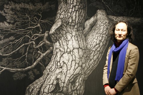 목탄으로 만들어낸 화면은 어둡고 깊다 적막하고 적요하기까지 하다 빛을 흡수해 버리는 블랙홀처럼 깊은 공간으로 빠져드는 착각을 불러일으킨다 그가 가장 단순하고 언제 어디서든 쉽게 만들거나 구할 수 있는 목탄을 검은색이 아니라 검은 공간이라 부르는 이유를 알 것만 같다 그림 속 소나무들이 자연광에서 더욱 입체감이 나는 연유다