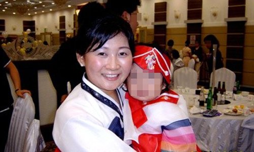 | ◇2005년쯤 한 식당에서 딸과 한복을 입고 사진을 찍은 덩신밍씨. 동아일보 제공 |