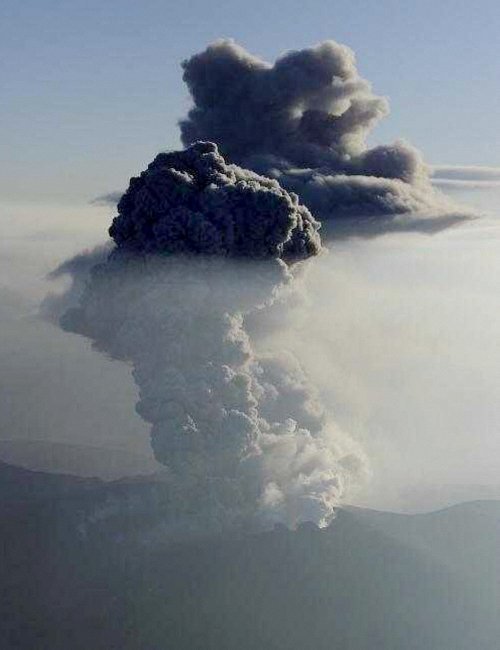 지난 11일 대지진 발생 사흘째인 13일 일본 남부 규슈(九州)의 화산이 한달만에 다시 폭발해 가스와 화산재가 4천m 상공까지 치솟은 것으로 알려졌다.