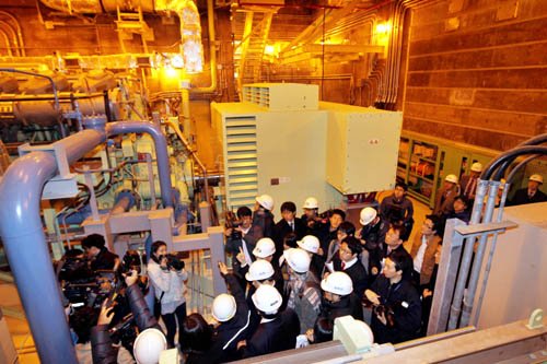 | 신고리원전 찾아… 이주호 교육과학기술부 장관 등 정부 관계자들이 16일 부산 기장군 장안읍 신고리원전 1호기를 찾아 비상 디젤발전기실을 둘러보며 안전관리 대책 등을 확인하고 있다. 부산=연합뉴스 |