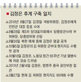 김정은은 김 위원장의 현지지도 등 공개활동을 수행하며 후계자로서의 입지를 다졌다. 지난 6개월간 김 위원장을 수행해 60여회의 공개활동에 나섰다. 이와 함께 북한 매체들은 작년 말부터 김정은이 공식 등장 이전부터 현지지도에 나섰음을 시사하는 사진자료들을 공개하고 있다. 김정은이 준비된 지도자임을 강조하기 위한 조치로 풀이된다.