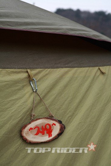 문패에 새길 글씨는 못을 달궈서 쓰기로 했다. 스토브에 벌겋게 달군 못을 리플로 움켜쥐고 정성껏 글씨를 새겼다. 글씨는 생각만큼 잘 새겨지지 않았다. 글씨가 삐뚤어지거나 획의 굵기도 달랐다. 그러나 나는 온 정성을 다해 글씨를 새겼다. 그것을 지켜보는 아들 녀석도 손에 땀을 쥐었다. 마지막 글자를 완성하고 나자 아들 녀석은 환호성을 질렀다. 나도 무슨 큰일을 한 것처럼 어깨가 으쓱했다. 이제 우리 텐트에도 이름이 생긴 것이다.