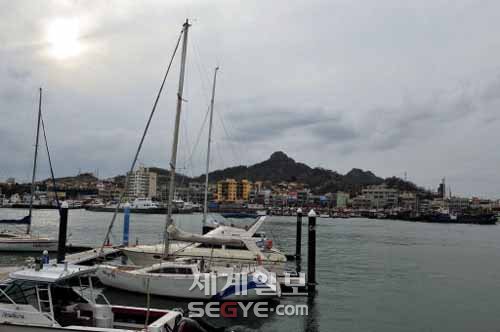 | 삼학도 마리나항에서 본 목포항. 해안선을 따라 옹기종기 모여 있는 크고 작은 건물과 유달산이 조화를 이뤄 미항의 자태를 뽐내고 있다. |
