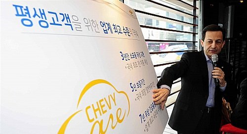 | ▲ 한국지엠의 마이크 아카몬 사장이 쉐비케어에 대해 설명하고 있다 |