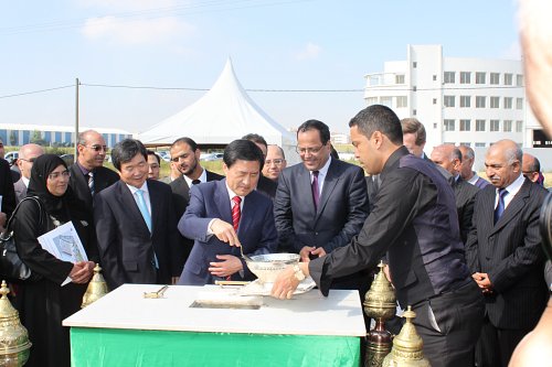 | 지난달 26일 카사블랑카 자동차직업훈련원 기공식장에서 허남식(앞줄 왼쪽 두번째) 부산시장이 모로코 전통의식에 따라 사업의 성공을 기원하는 의미가 담긴 진흙을 떠 옮기는 시삽을 하고 있다. |