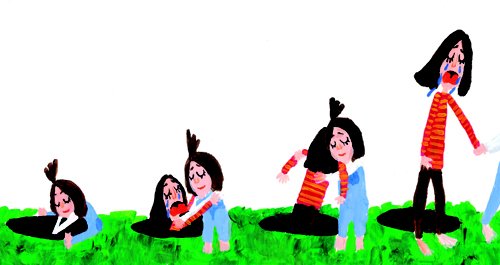 채 피지도 못하고 스러진 열 아홉살 소녀가 남기고 간 말이다. 지난해 대안학교인 금산간디학교를 마치며 졸업작품으로 제출한 그림책 ‘절대 보지 마세요! 절대 듣지 마세요!’의 출판 소식에 날 듯이 기뻐하던 변선진(당시 19세)양은 지금 세상에 없다. 머리가 아파 진찰차 잠시 들른 병원에서 ‘재생불량성빈혈 중증’이라는 병명으로 입원한지 불과 두 달만인 작년 4월 16일 세상을 떠났다.