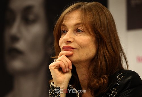 프랑스의 세계적 여배우 이자벨 위페르가 26일 오전 서울 송파구 방이동 한미사진미술관에서 열린 자신의 신작 영화 '코파카바나' 홍보 기자회견을 갖고 있다.