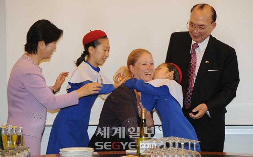 경비원의 안내로 2층 홀로 안내를 받은 리틀엔젤스는 곧 나타난 수수한 차림의 젊은 여성의 반가운 인사를 받았다. 시장의 보좌관 쯤으로 보이는 그녀에게 한 스탭이 '시장은 언제오시냐'는 질문을 던지자 '내가 시장이다'라고 하여 잠시 당황스런 장면을 겪기도 했다.