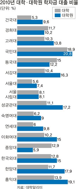 사정이 이렇다 보니 적잖은 대학에서 대학원생의 학자금 대출 신청 비율도 학부생보다 월등히 높은 게 현실이다. 급기야 지난 3월 성균관대 대학원생들은 “높은 등록금 탓에 학생들이 목숨을 끊거나 학업과 생계를 위협받는 등 교육권을 침해받고 있다”며 국가인권위원회에 진정을 냈지만 기각됐다.