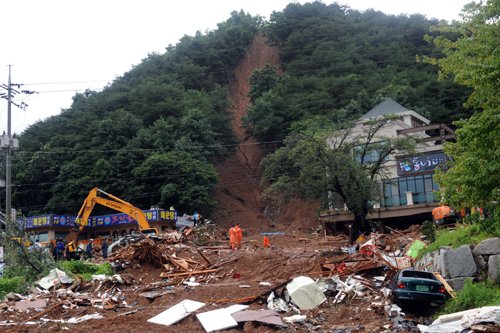 마을 토박이인 한 주민은 “산사태가 난 산에는 수년 전까지 군부대에서 포 진지를 만들고 진지를 따라 도로를 냈는데 이번 산사태로 도로와 진지 아래 쪽이 밀려나면서 발생했다”고 했다. 포 진지와 도로가 물을 잔뜩 머금었다가 한꺼번에 쏟아져 내리면서 산사태가 났다는 것이다.