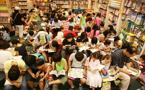 | 여름방학과 휴가철을 맞은 어린이와 청소년들이 한 대형서점에서 책을 읽고 있다. 국립중앙도서관과 교사모임 등은 이들을 위해 방학 때 읽을 만한 책들을 선정, 발표했다. 세계일보 자료사진 |