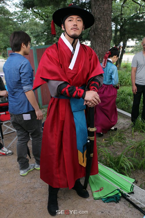 배우 장혁이 9일 오후 서울 세종로 경복궁 내 경회루에서 진행된 SBS사극 '뿌리깊은 나무' 현장공개에서 휴식을 취하고 있다.