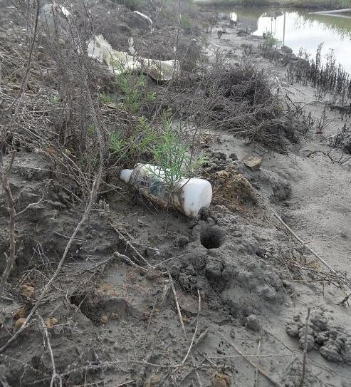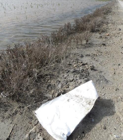 염둑 곳곳에 제초제인 ‘풀방패’와 살충제 ‘충모리’, 살균제 ‘에스엠 가멘다’ 봉투가 발견됐다. 염둑 주변에 함초가 말라 죽어있고 증발지 곳곳에 바닷 게가 배를 뒤집은 채 죽어 있다.