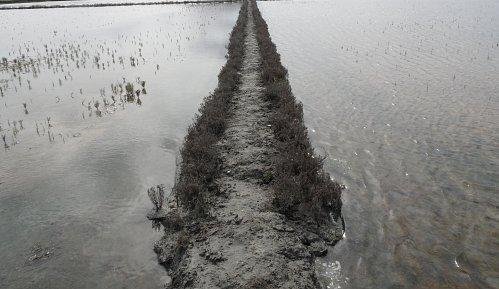 농약을 살포한 염전과 그렇지 않은 염전이 확연히 차이가 난다. 바닷물을 증발시키는 ‘제1 증발지’로 서로 같은 단계임에도 불구하고 농약을 치지 않은 염전은 보리밭처럼 함초가 초록 물결을 이루고 있지만 농약을 친 염전은 풀 한 포기 자라지 않은 채 검붉은 염전 바닥을 드러내 보이고 있다.