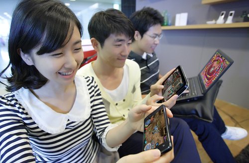 | 스마트폰 보급이 확산되면서 언제 어디서나 인터넷을 즐길 수 있게 됐지만 통신비 지출이 늘어 절약하는 지혜가 필요하다. 젊은이들이 스마트폰, 태블릿PC 등을 이용해 게임을 즐기고 있다. KT 제공 |
