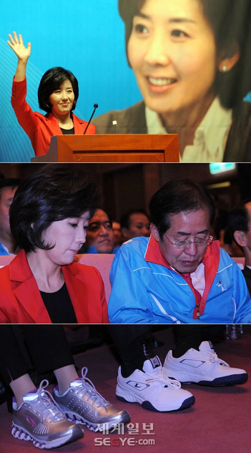 나경원의 새 운동화 입력 : 2011-09-28 15:21:01 수정 : 2011-09-28 15:21:01 구글 네이버 유튜브 운동화로 갈아신고 서울시장 선거 준비... 28일 국회 의원회관 대회의실에서 한나라당 서울시장 후보자 추천장 수여식이 열렸다. 이자리에서 나경원 서울시장 후보자는 홍준표 대표로부터 운동화와 시계를 받았다. 운동화로 갈아신고 분초를 아껴 선거에 임하라는 의미. 나경원 후보자와 홍준표 대표가 새로 갈아신은 운동화를 쳐다보고 있다. 허정호 기자 hoya@segye.com Copyright ⓒ 세계일보. 무단 전재 및 재배포 금지 세계일보 허정호