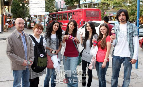 | 4만명으로 파악되는 터키의 한류팬들을 이끌고 있는 팬클럽 회장단. 이들은 평상시에도 한국 관련 소지품을 갖고 다닌다. |