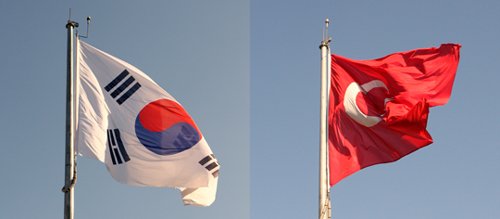 | 앙카라의 한국공원에서 휘날리고 있는 태극기와 터키 국기(오른쪽). |