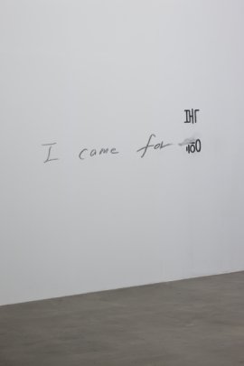 | 덕수궁미술관 전시에 출품된 함양아 작가의 네온 사인 작품 ‘I came for 행복/항복’. 작가는 관객에게 “행복이 뭔가”질문을 던지고 있다. 그러면서도 우리가 행복이라고 생각하는 것은 물질 등 그 어느것에 대한 항복이 아닐까 반문해 본다. |