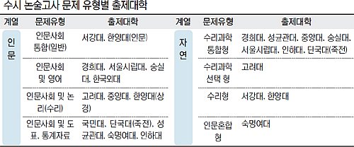 올해는 많은 대학이 시험 시간과 문항 구성에 변화를 줬다. 대부분의 대학이 시험시간을 기존 3시간에서 2시간으로 조정했고 논제 수도 1∼3개로 줄였다.