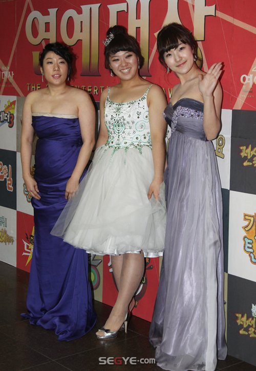 24일 오후 서울 영등포구 여의도동 KBS홀에서 열린 '2011 KBS 연예대상' 시상식에 개그우먼 김영희, 권미진, 정은선이 참석해 포즈를 취하고 있다.