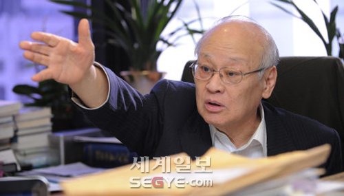 | 김용준 변호사는 헌법재판소장과 대법관을 지낸 원로 법조인이다. 그는 “현실과 괴리가 있다면 법을 고치는 게 맞지만 무엇보다 원칙을 중시하는 것이 중요하다”면서 “법을 안 지키면 손해를 보는 사회가 올바른 정의사회”라고 강조한다. 허정호 기자 |