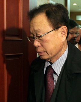 | 4개국 순방길에 한나라당 고승덕 의원에게 전당대회 때 돈봉투를 건넸다는 의혹을 받고 있는 박희태 국회의장이 8일 일본 등 4개국 순방차 출국하기 위해 서울 김포국제공항에 도착해 굳은 표정으로 걸어가고 있다. 연합뉴스 |