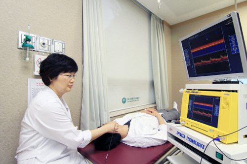 | 한 환자가 뇌졸중 상태 여부를 확인하는 뇌 혈류 검사를 받고 있다. 이대목동병원 제공 |