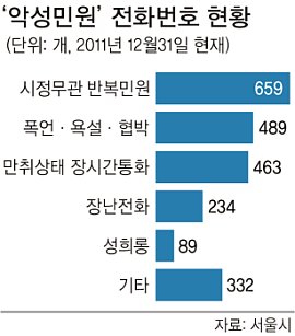 15일 서울시에 따르면 악성전화로 분류돼 별도 관리를 받은 전화번호는 지난해 12월31일까지 2266개에 달한다. 매달 50∼200개의 전화번호가 악성민원으로 새로 등록된다.