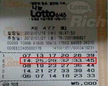 민족의 최대 명절, 설날을 바로 앞둔 21일 토요일 저녁 9시 10분경. 나눔로또 477회 추첨이 있고 난 바로 직후, 로또정보 제공업체(lottorich.co.kr)서 전화를 받은 한호성(가명?남)씨는 눈이 번쩍, 머리가 핑 도는 느낌을 받았다. 휴대폰을 통해 들려오는 ‘로또 1등 당첨’소식을 믿을 수가 없었기 때문.