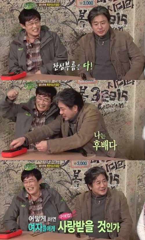 한편 최민식은 “대학교 때 이경규와 지구상의 모든 여자에 대해 이야기 했다”며 “어떻게 하면 여자한테 잘해 줄 것인가, 어떻게 여자한테 사랑 받을 것인가에 대해 대화를 나눴다”고 회상하기도 했다.